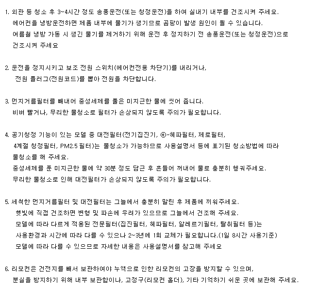 아래 에어컨 올바른 보관방법으로 참고해 주시기 바랍니다.