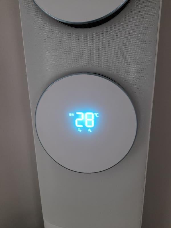 설치 직후에 설치 기사분이 에어컨을 작동하니 에어컨이 제대로 설치되었는지 에어컨에서 자가 점검하는 과정이 수행되었습니다. 리모컨에는 온풍 모드도 있지만 이 모델에서는 작동하지 않는다고 합니다.