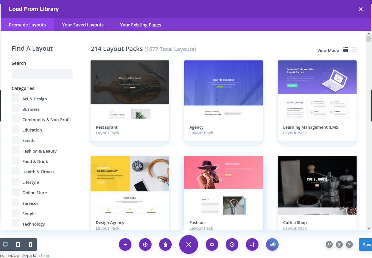 레이아웃 팩은 7~9개의 레이아웃 페이지로 구성되며, Divi 테마 내에서 로드하여 사용할 수 있습니다. 특정 레이아웃 페이지를 로드하여 수정하거나 2개 이상의 레이아웃 페이지를 동시에 로드하여 필요한 부분만 활용하는 것이 가능합니다.