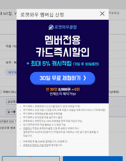저는 삼성카드를 쿠팡에 연결하여 이용하고 있지만 와우회원에는 가입하지 않았습니다. 이번 기회에 와우회원에 가입했습니다.ㅎ