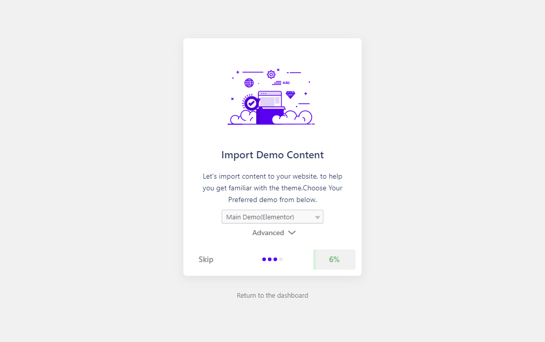 플러그인 설치가 완료되면 데모 콘텐츠 가져오기 화면이 표시됩니다.