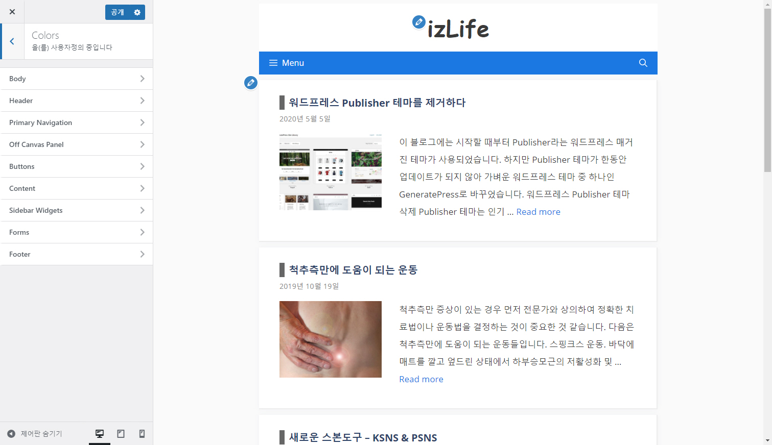 GeneratePress 테마로 워드프레스 블로그 세팅 예시(feat. 포스트인컴) - How to customize the GeneratePress theme