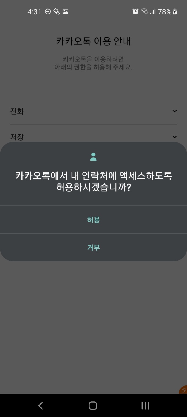 "확인"을 누르면 카카오톡을 시작합니다 화면이 표시됩니다.