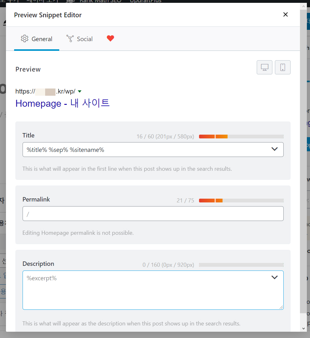 워드프레스 Rank Math에서 사이트 제목과 사이트 설명 추가하기