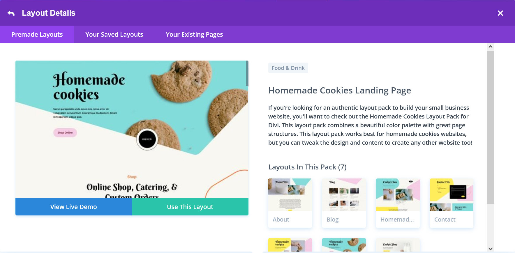 수제 쿠키 레이아웃 팩에 포함된 전체 레이아웃 페이지와 자세한 정보는 "Get a FREE Homemade Cookies Layout Pack for Divi (Divi용 무료 홈메이드 쿠키 레이아웃 팩 다운로드)"를 참고해보시기 바랍니다.