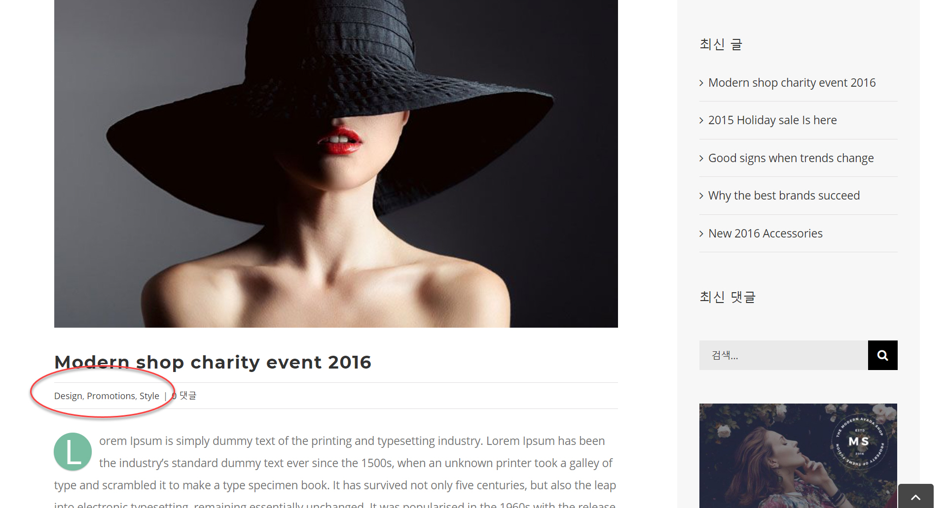 - Show Title - 특성 이미지 아리에 글 제목 표시