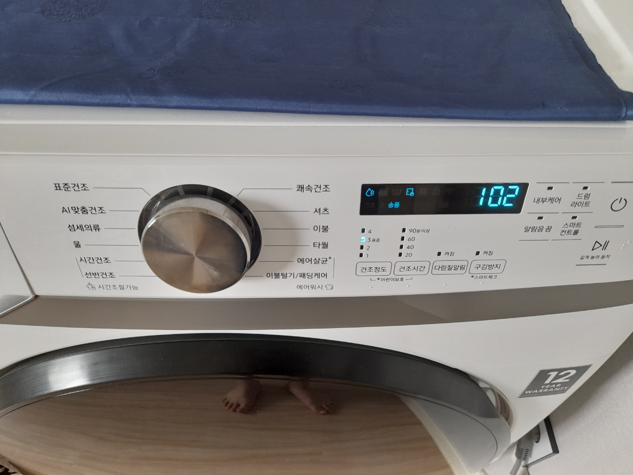 건조기에 빨래를 넣고 가동하면 자동으로 시간을 계산하여 작동합니다. 보통 2시간 정도 걸리는 것 같습니다.