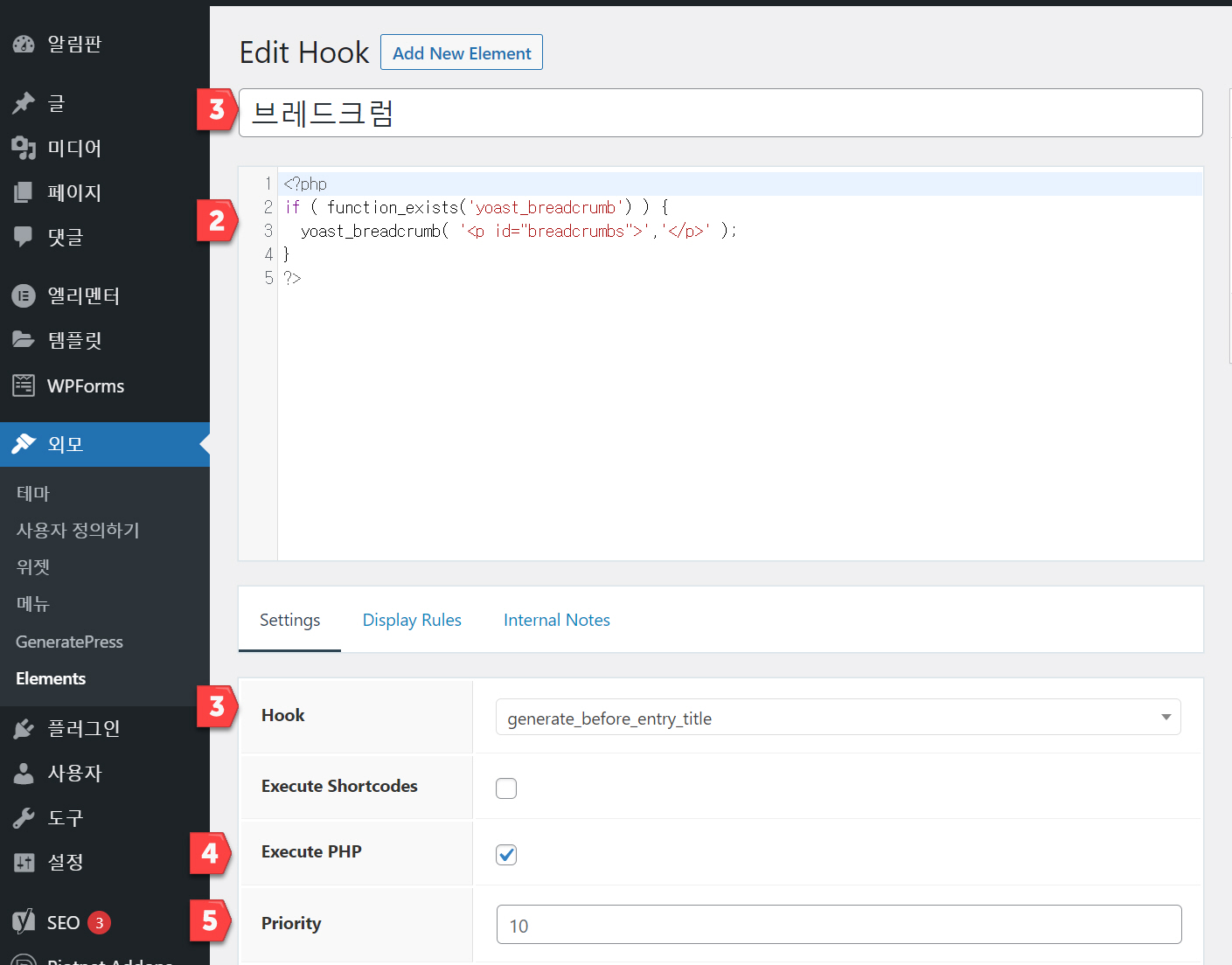 GeneratePress 테마에서 Yoast SEO 브레드크럼 추가하기