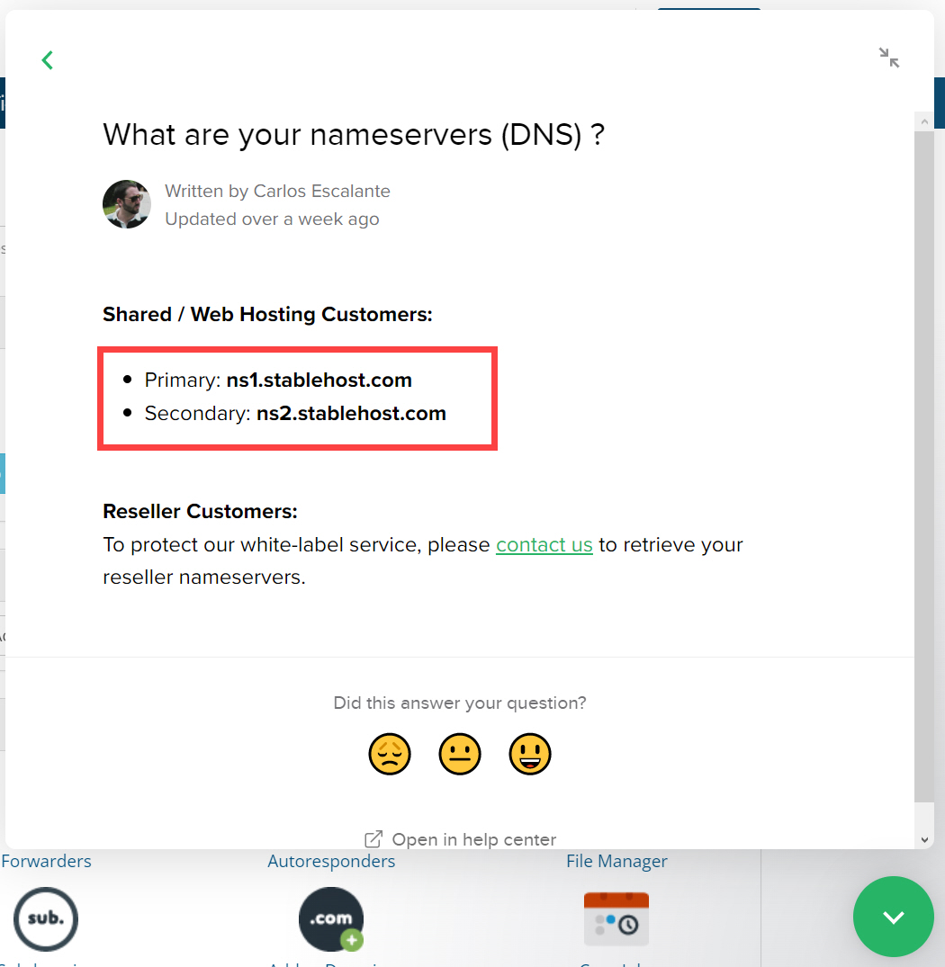 Stablehost의 공유호스팅 네임서버 정보는 다음과 같습니다.