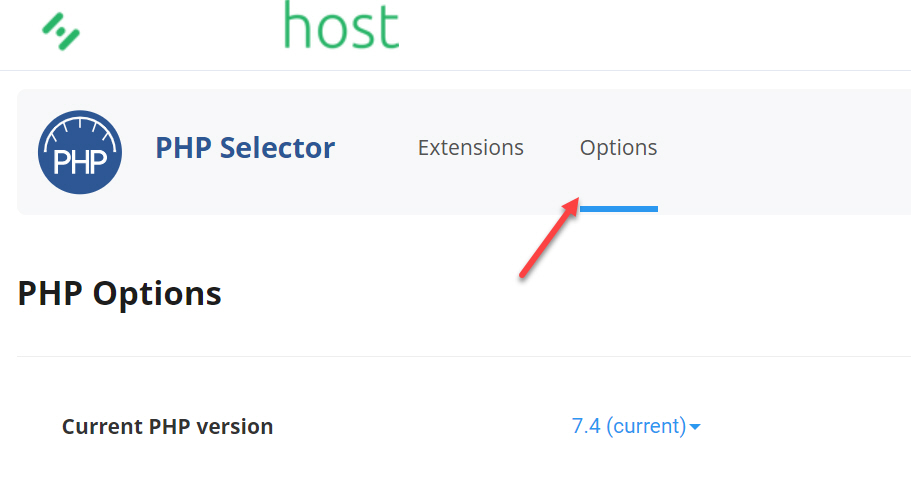 PHP 버전을 설정했다면 PHP ini 설정값을 변경해야 합니다. 상단의 Options 탭을 클릭합니다.