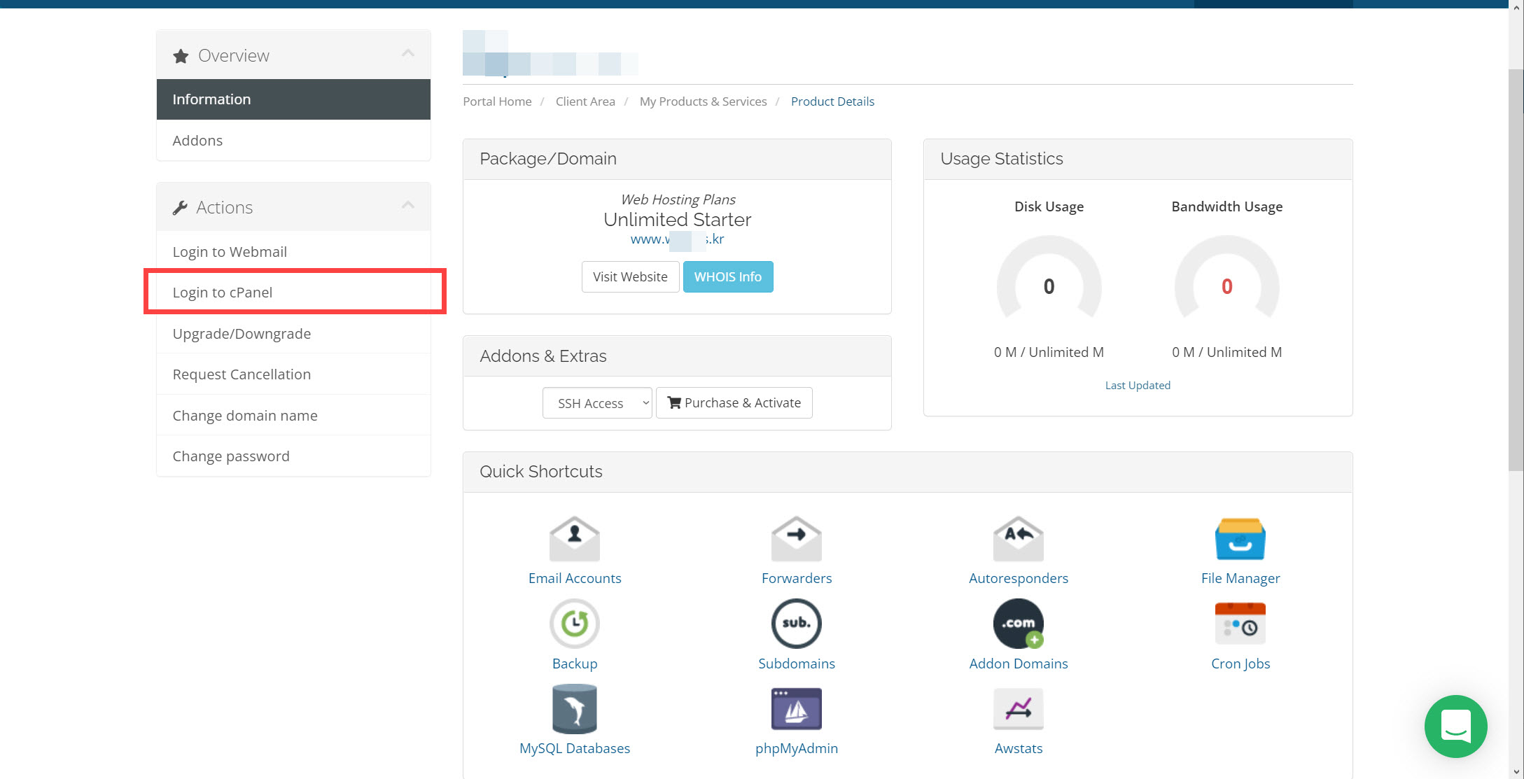 저가형이지만 cPanel도 제공됩니다.