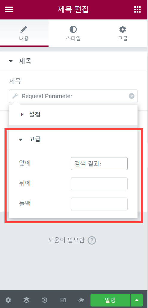 그리고 고급(Advanced)에서 "앞에 (Before)" 필드에 "검색 결과: "를 입력합니다. (혹은 원하는 문구를 입력합니다.)