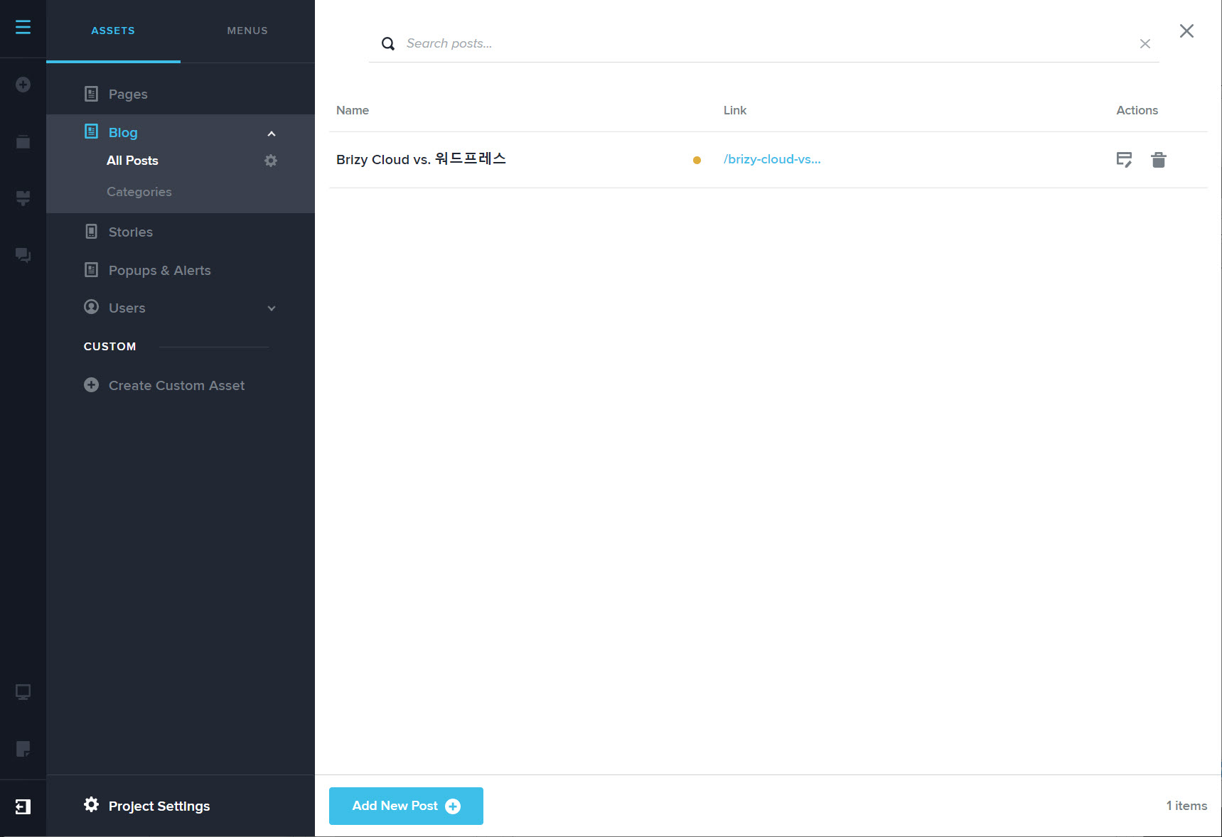 Blog를 클릭하면 포스트(글) 리스트가 표시됩니다. 마찬가지로 여기에서 새 포스트를 만들 수 있습니다.