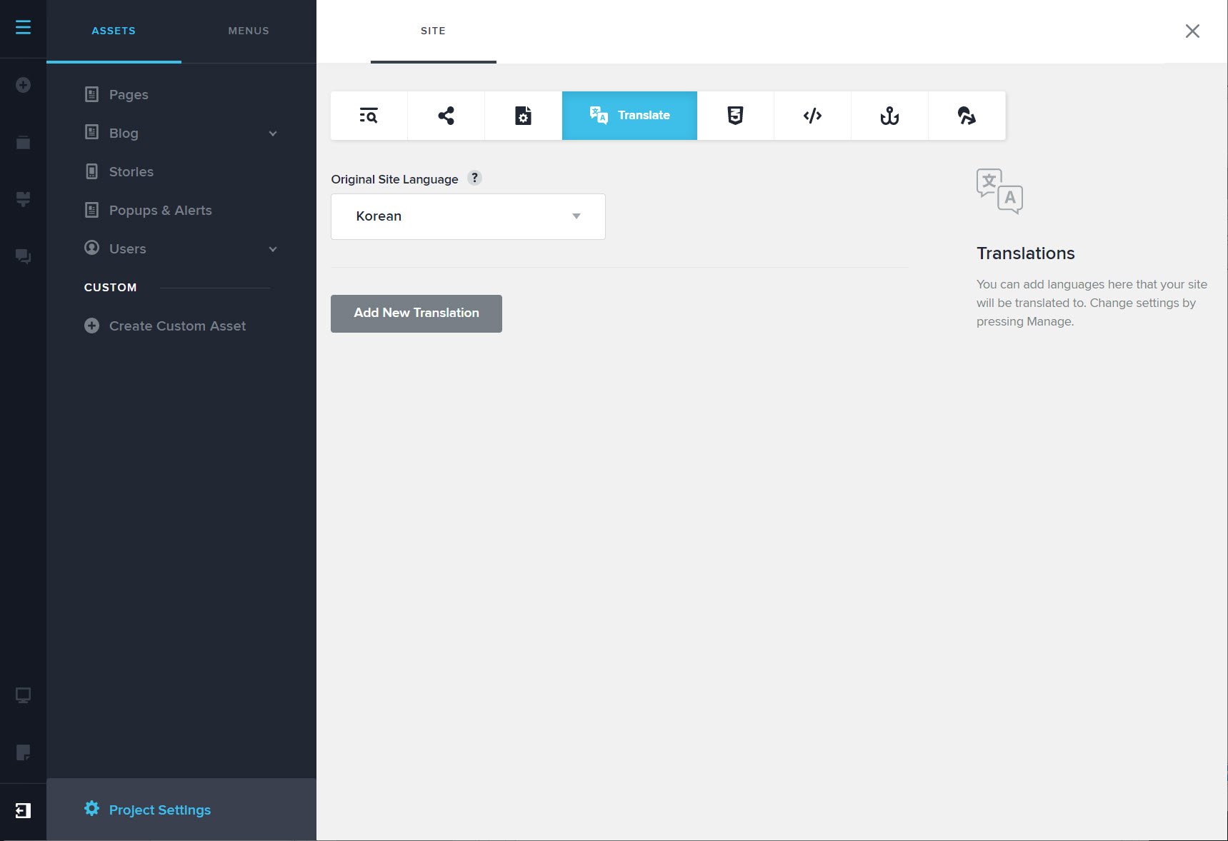 9. 하단의 Project Settings를 클릭하면 사이트 전체에 적용되는 프로젝트 설정에 접근할 수 있습니다.
