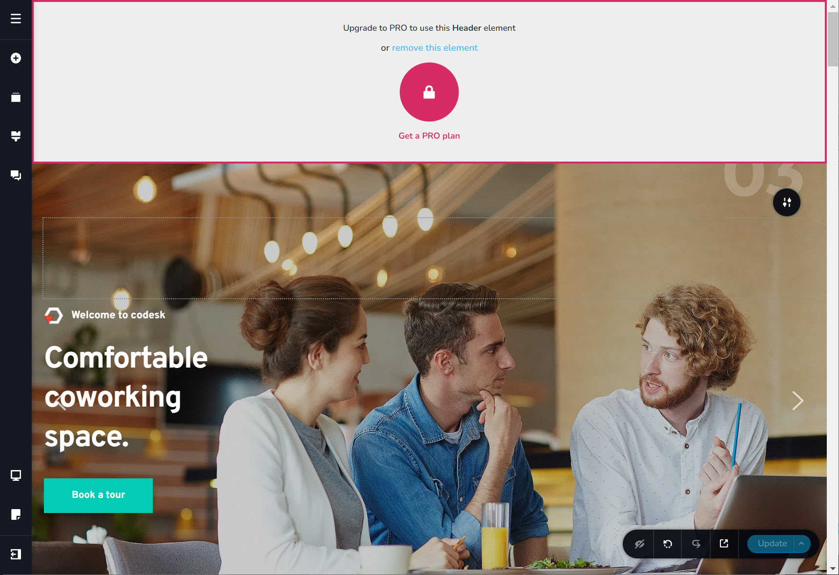 위의 그림에서 PRO 플랜에서만 제공되는 블록은 자물쇠 아이콘이 표시되고 PRO 요금제로 업그레이드해야 이용할 수 있습니다. 심플한 랜딩 페이지를 만드는 경우에는 무료 플랜으로 충분하지만, 프로 기능을 사용하면 보다 수월하게 사이트를 만들 수 있고 고급 기능도 이용할 수 있습니다.