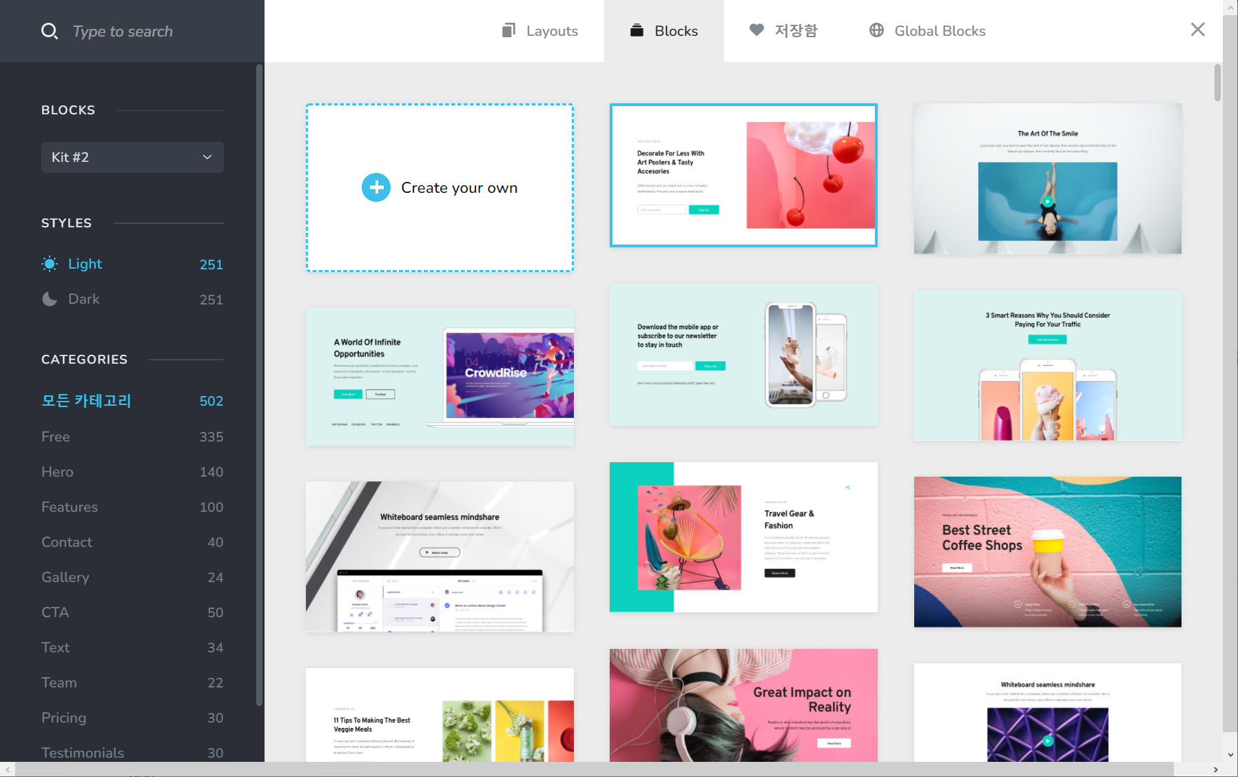 Brizy 페이지 빌더에서는 블록을 제공합니다. 무료 버전에서는 Free로 분류된 블록을 무료 버전에서 사용할 수 있습니다.