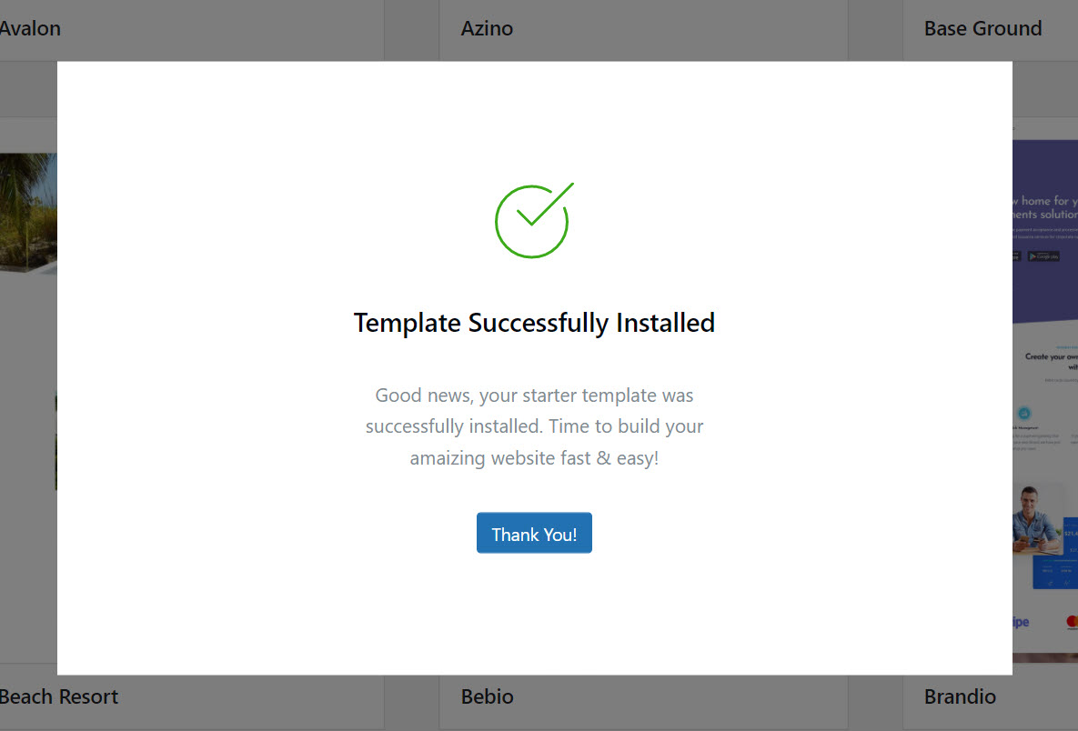 조금 기다리면 템플릿 설치가 완료되면서 "Template Successfully Installed" 메시지가 표시됩니다.