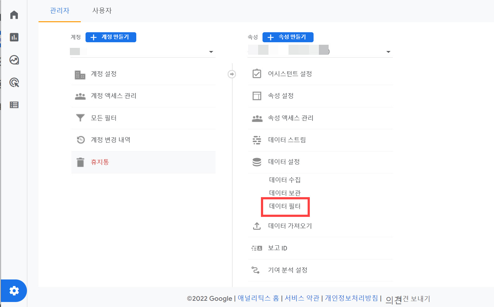 새로운 GA4 속성을 이용하는 경우에는 다음 방법으로 내부 IP 주소를 통계 트래픽에서 제외할 수 있습니다. 내가 내 사이트를 접속할 때 통계에 잡히지 않기를 원하는 경우가 일반적이므로 아래의 방법으로 내부 IP에 대하여 필터링 설정을 하시기 바랍니다.