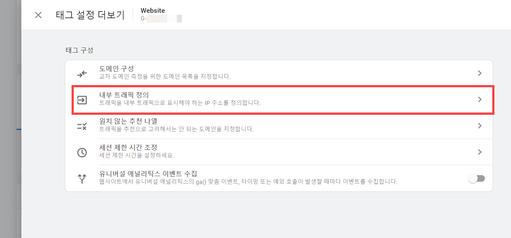 기존 애널리틱스 속성(UA)을 사용하는 경우 다음 글을 참고하여 내부 IP 주소를 통계 트래픽에서 제외할 수 있습니다.