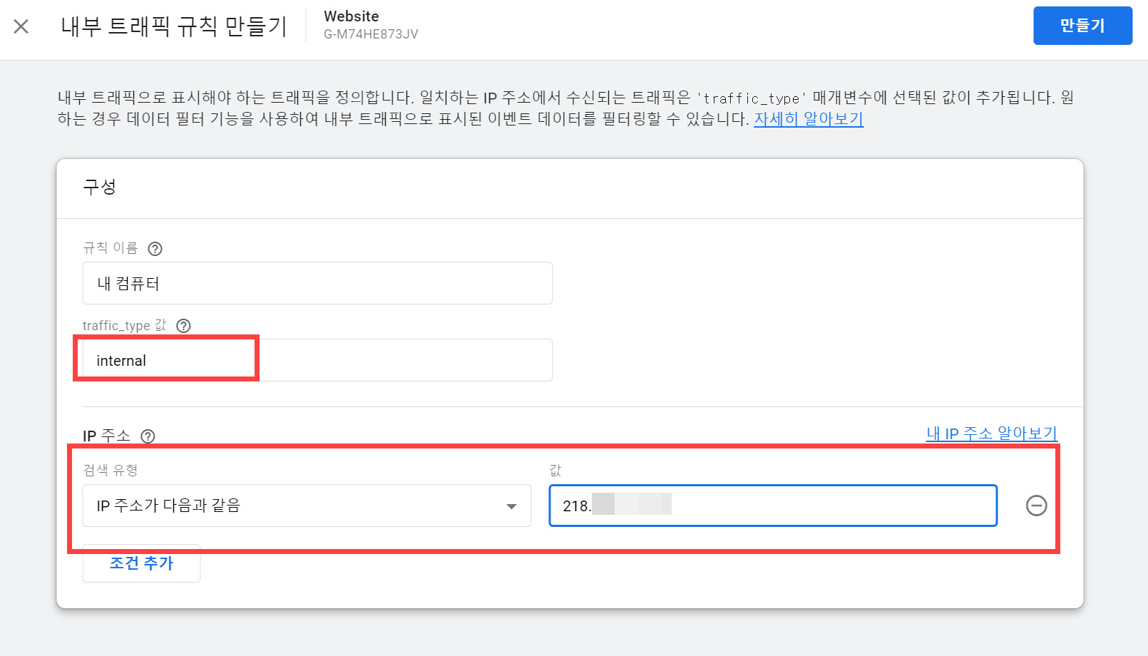 구글 애널리틱스 GA4 내부 IP 통계 트래픽 제외하기
