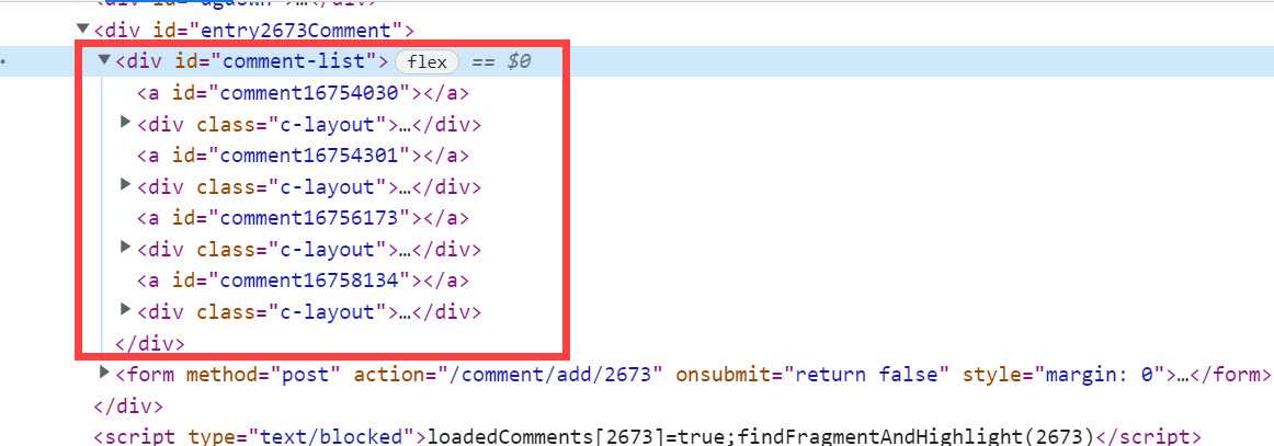 이 블로그에 사용되는 스피드스타 스킨의 경우 댓글 리스트를 표시하는 HTML 태그에 [**comment-list**]라는 CSS ID(앵커)가 지정되어 있습니다.
