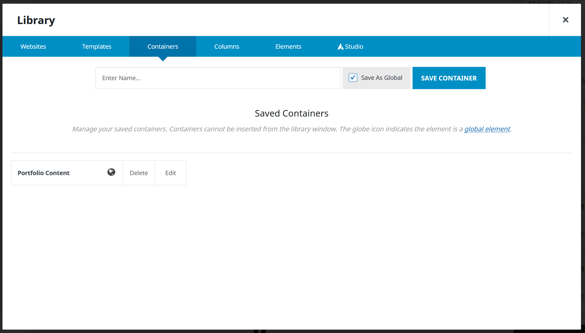 또한, 특정 페이지에서 컬럼이나 섹션을 라이브러리에 저장(마찬가지로 "Save As Global" 옵션 체크)하여 마찬가지로 숏코드를 복사하여 활용할 수 있습니다.