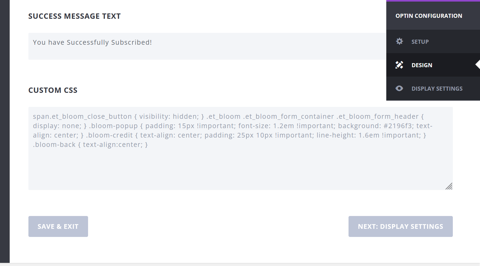 그리고 Design 탭의 Custom CSS 섹션에 그림과 같은 CSS 코드를 추가합니다.