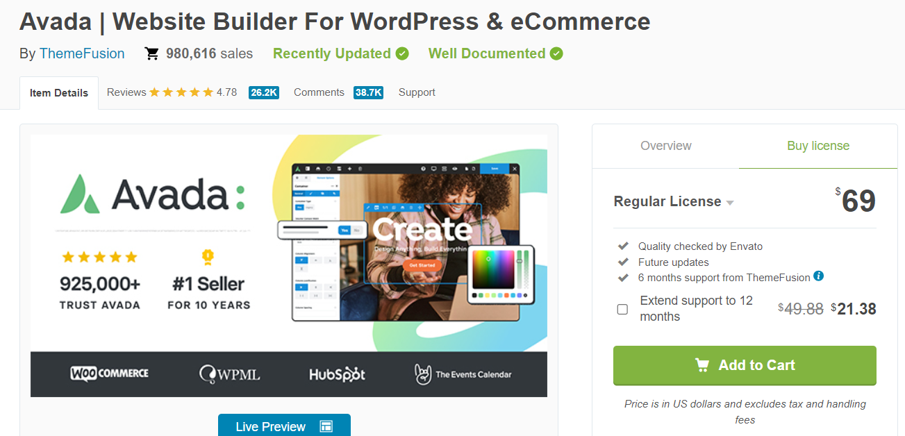 아바다(Avada)는 10년 동안 판매 1위를 기록하고 있는 베스트셀링 테마로서 Divi 테마와 비슷한 판매량을 기록하고 있습니다.