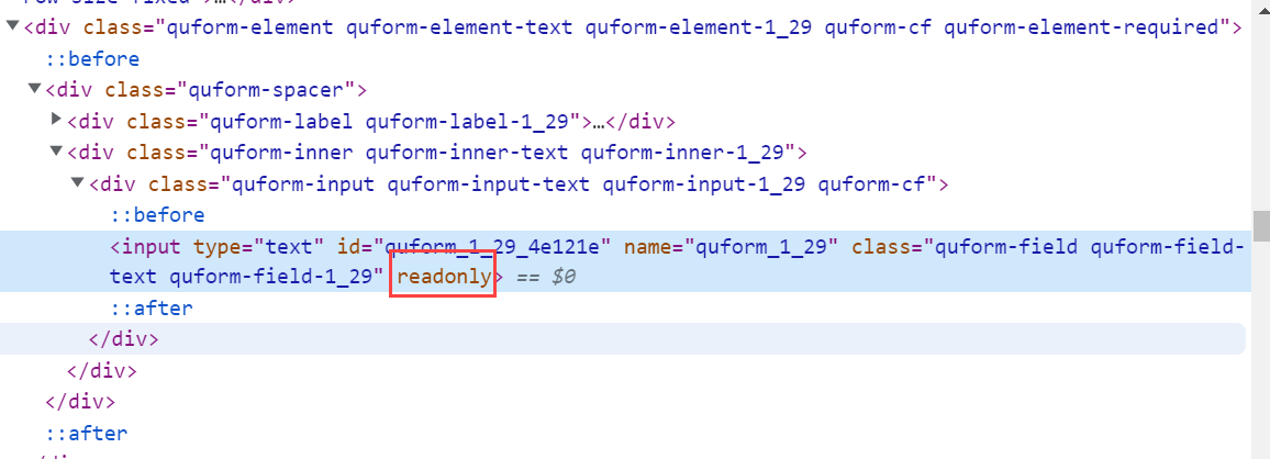 워드프레스 Quform 플러그인: 입력 필드를 읽기 전용으로 설정하는 방법