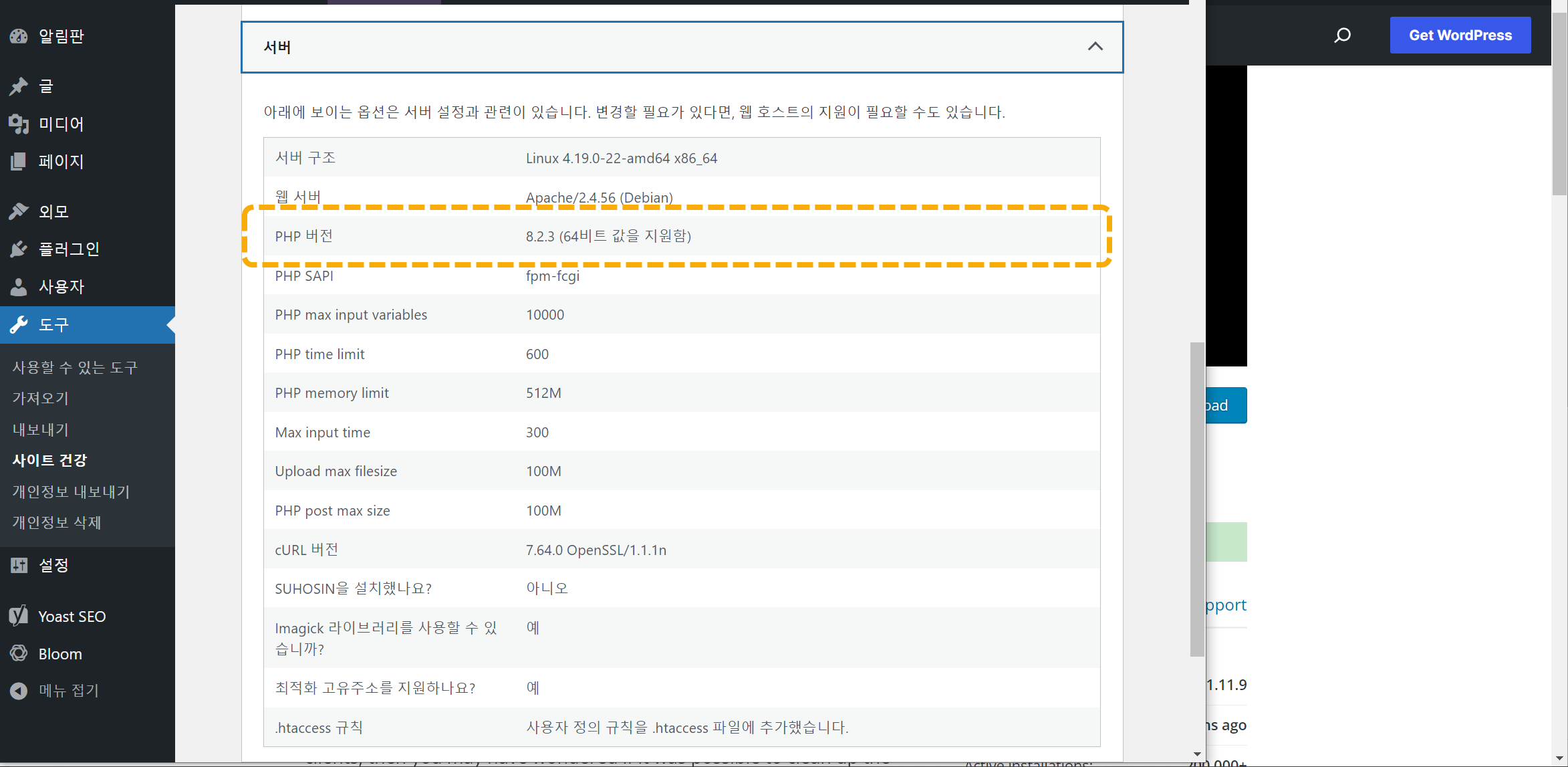 기존 호스팅에서는 PHP 8.0까지 지원되었지만 클라우드웨이즈는 현재 최신 버전인 PHP 8.2까지 적용이 가능하여 PHP 8.2로 설정했습니다. PHP 버전이 높을수록 보안과 속도면에서 유리합니다. (카페24에서는 현재 PHP 7.4까지 지원됩니다.)