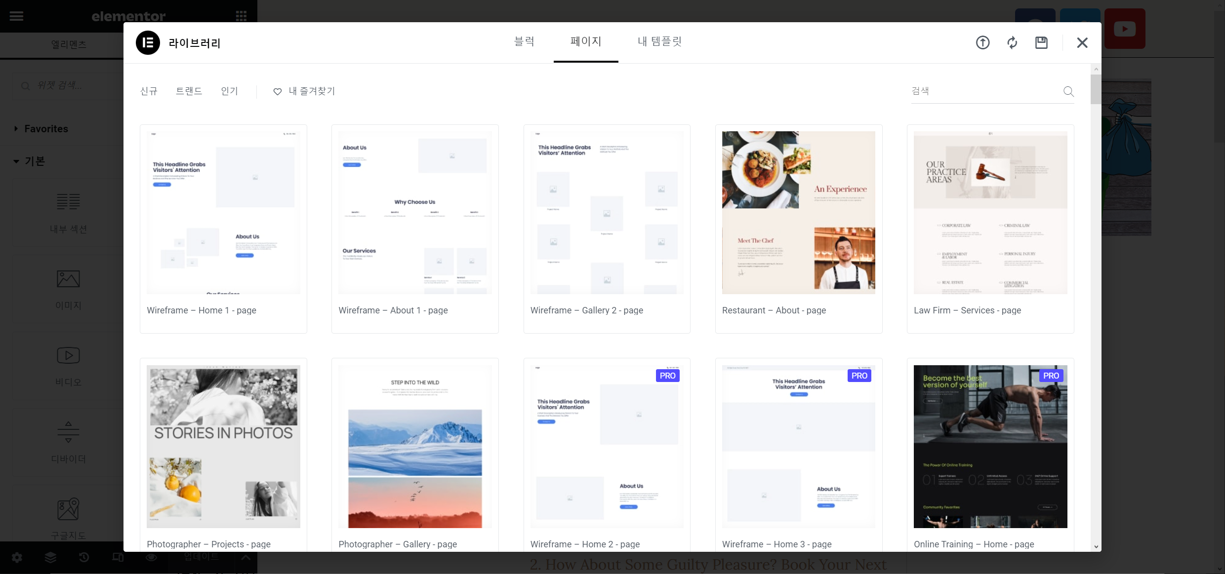 엘리멘터가 업데이트되면서 라이브러리 화면이 이전보다 조금 세련되게 바뀐 것 같습니다.