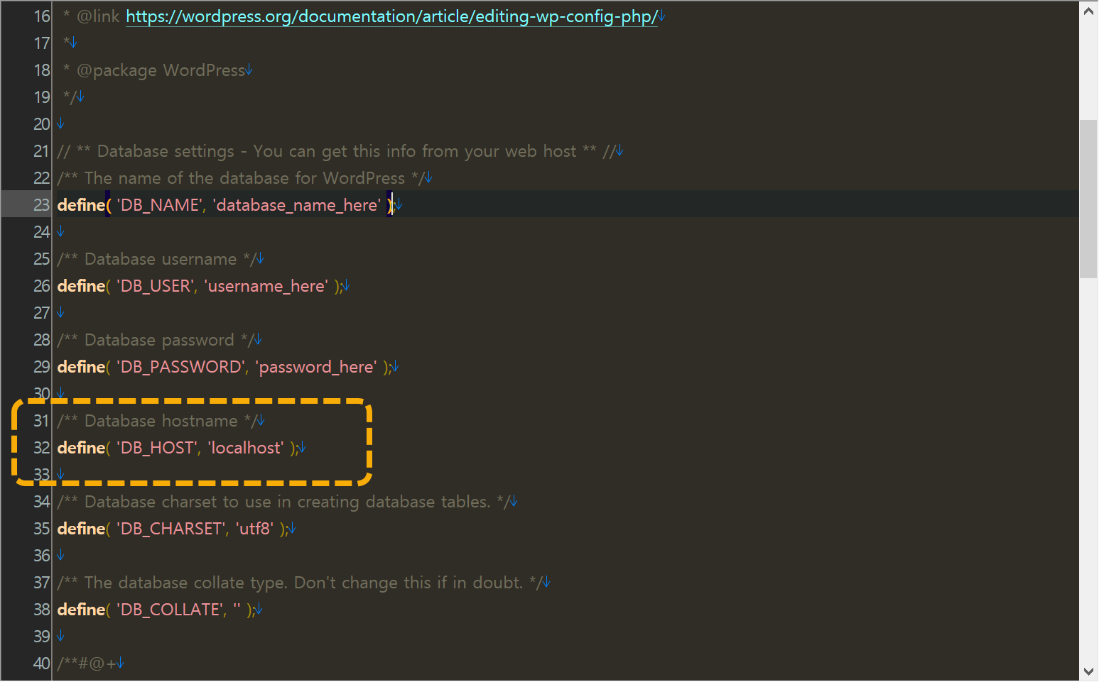 저는 살펴보니 [**wp-config.php**] 파일에서 DB_HOST 라인이 누락되어 있었습니다. 그래서 다음 라인을 구성 파일에 추가했습니다.