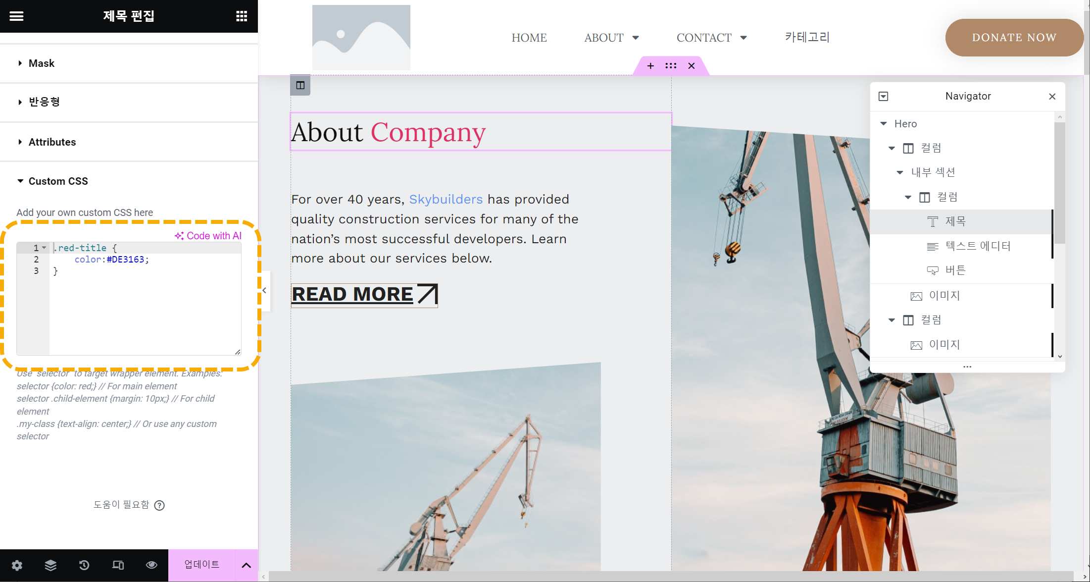 워드프레스 엘리멘터 페이지 빌더: 특정 텍스트의 색상을 다르게 설정하기