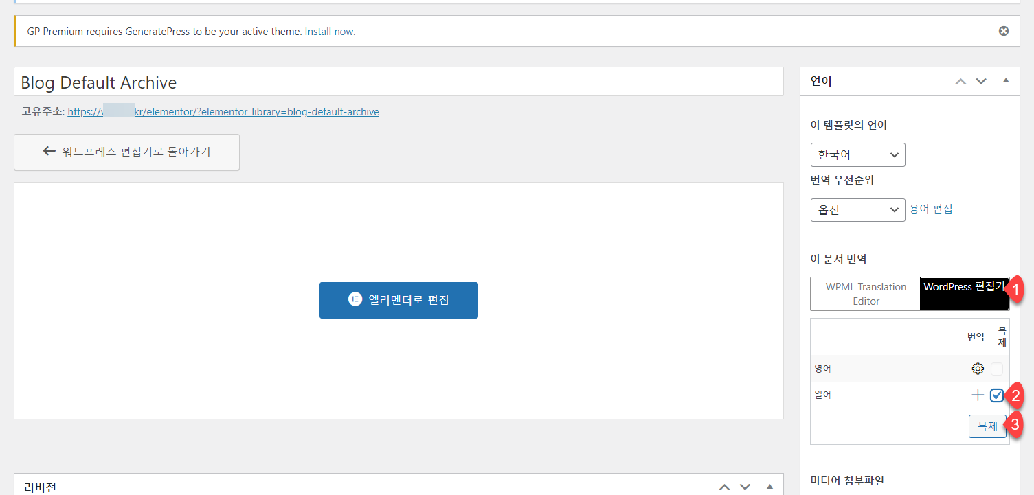 워드프레스 엘리멘터 템플릿을 WPML을 사용하여 다른 언어로 번역하기