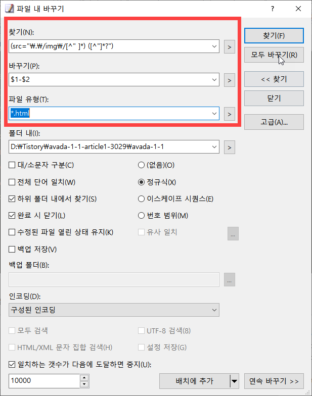 EmEditor를 사용하여 HTML 내의 이미지 파일 경로 내의 이미지 이름에서 공백을 하이픈으로 바꾸기