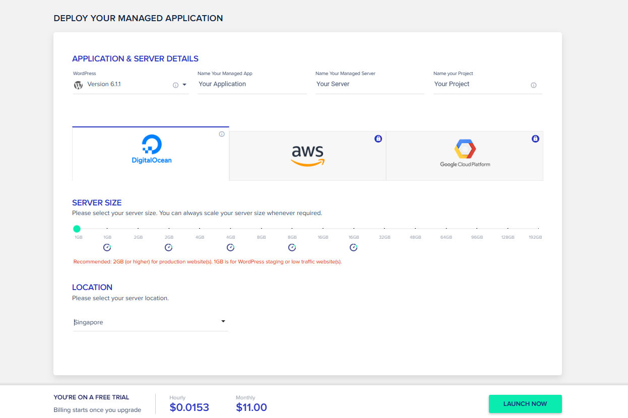 지난 5월부터 클라우드웨이즈 신규 가입자는 DigitalOcean, AWS, Google CloudPlatform 중에서 서버 제공자를 선택할 수 있도록 바뀌었습니다.