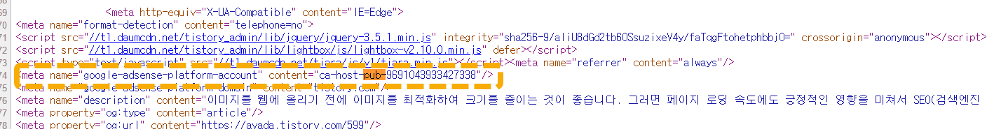 저는 이 블로그에서 애드센스 광고를 제거했습니다. 애드센스 연동을 해제하고 사이트에서 애드센스 광고 코드를 모두 삭제하였는데, HTML 소스를 확인해 보면 여전히 카카오의 PUB 코드가 추가되어 있는 것 같습니다.
