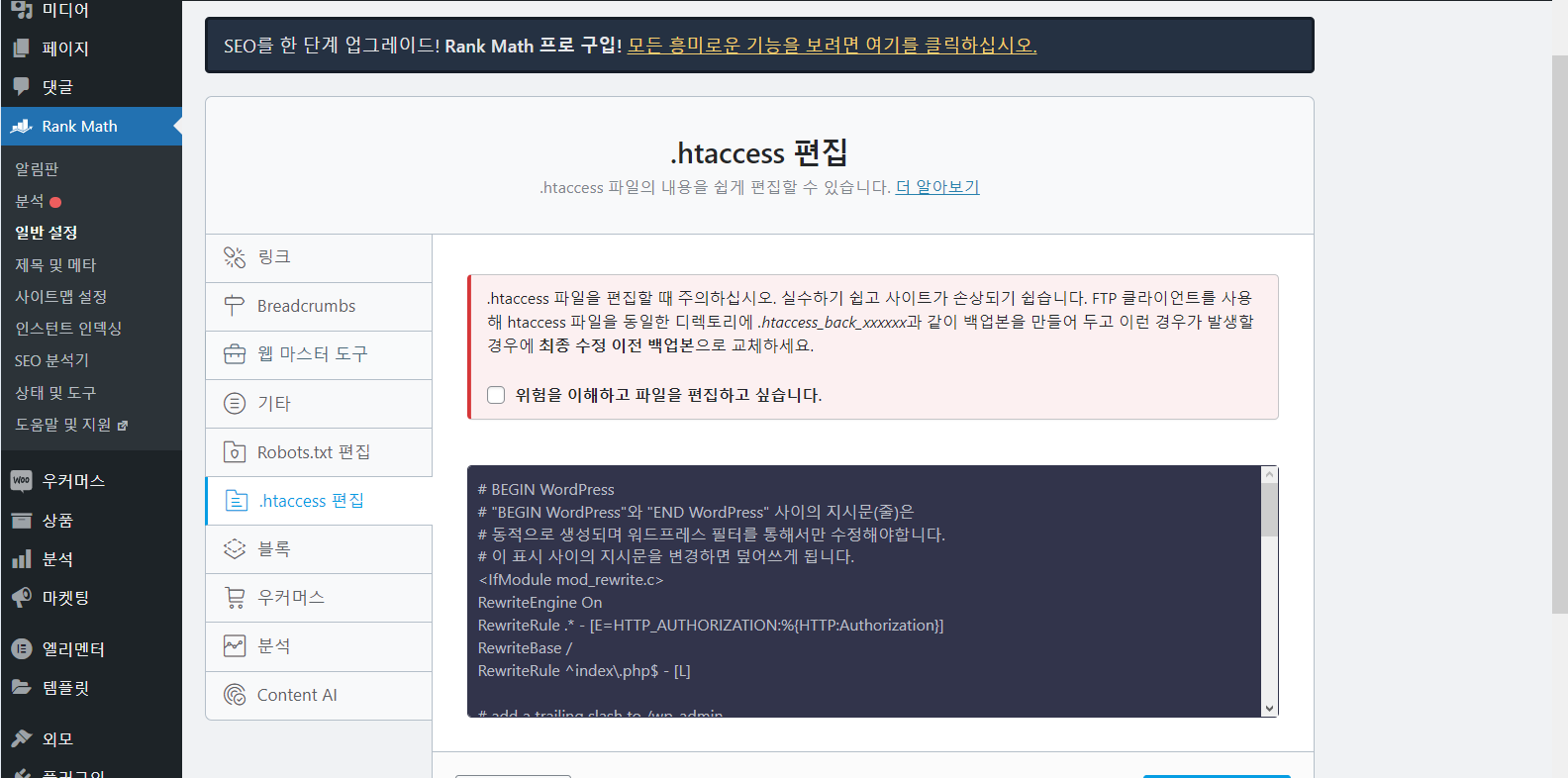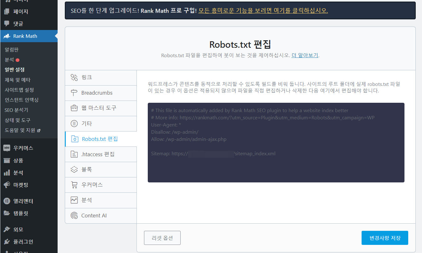 Rank Math 플러그인에서 Robots.txt 파일을 수정할 수 없는 이유