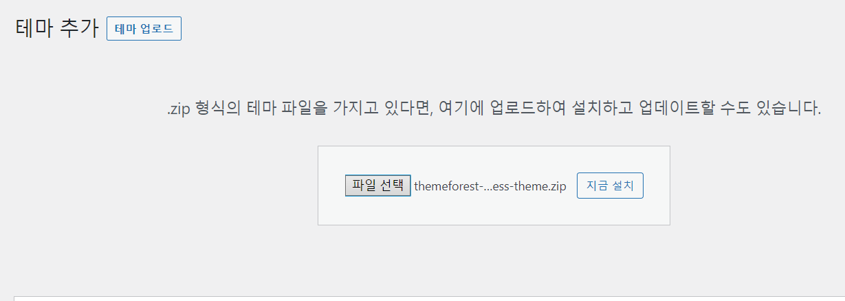 설치 파일을 업로드하고 지금 설치 버튼을 클릭합니다.