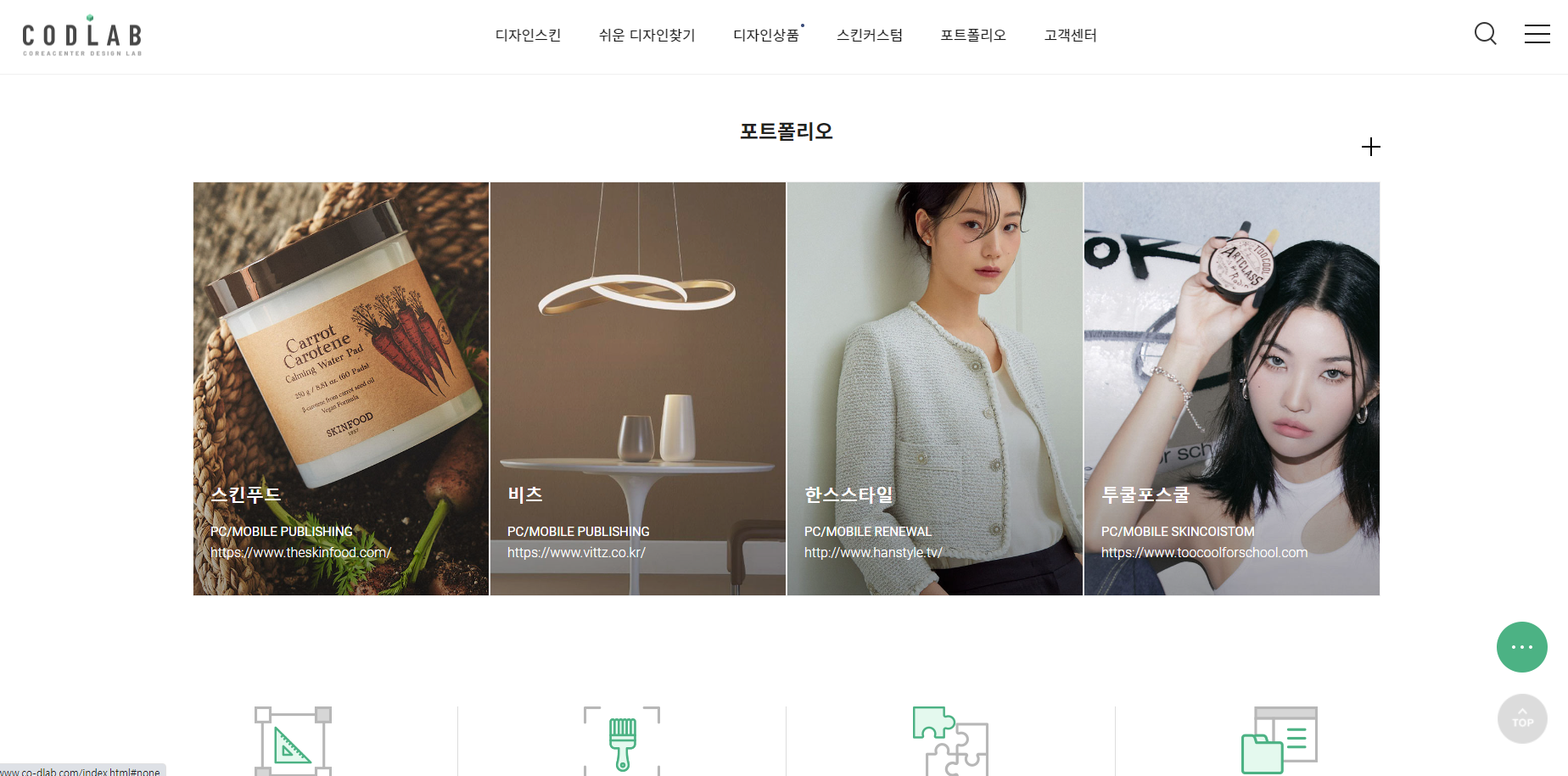 실제로 스킨푸드, 투쿨포스쿨에서 코디랩으로 자사몰 디자인을 제작했네요.