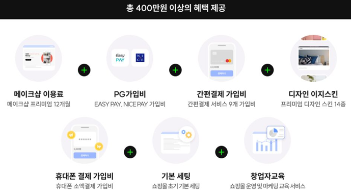 1인 창업자 분들이라면 메이크샵에서 400만원 상당의 혜택을 무료로 받아 빠르게 완성된 쇼핑몰을 받아 시작하는 방법을 추천드립니다.