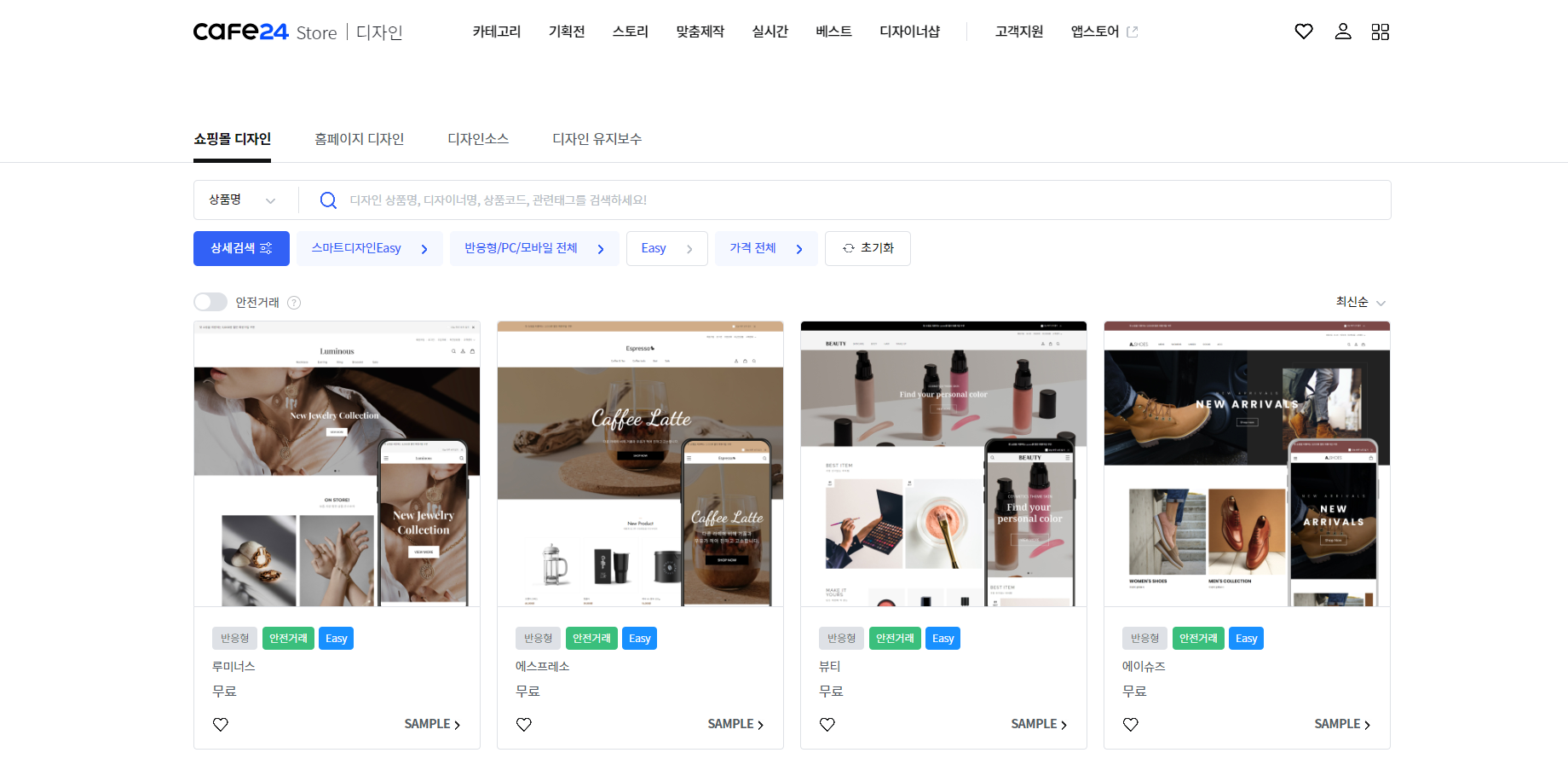 카페24디자인센터에서 다른 사용자들이 만든 스킨을 구매할 수 있습니다.