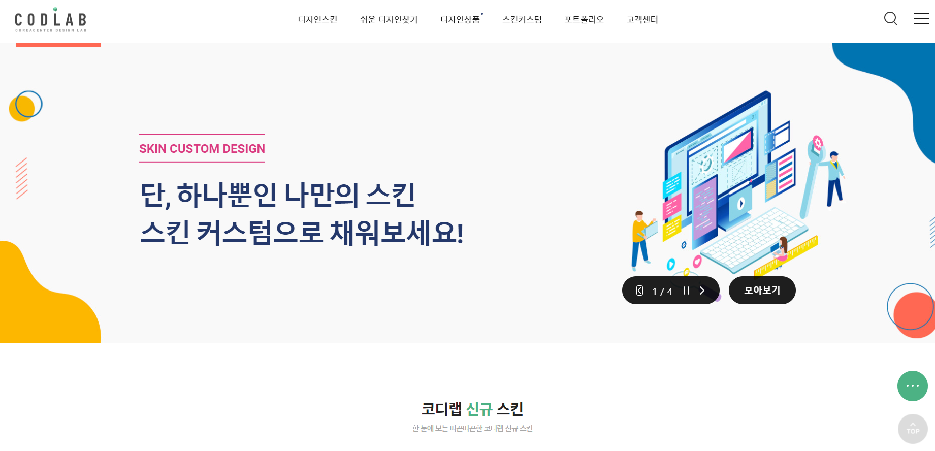 만약 위 개별디자인TIP 가이드를 봐도 모르겠거나, 특별한 스킨 디자인을 원하거나, 상세페이지 제작 등이 필요하다면 메이크샵에서 운영하는 “코디랩”을 이용해도 좋을 것 같습니다. 카페24디자인센터와 고도몰 쇼핑몰 스킨 작업 대행의 경우 사설 업체에서 진행하지만, 메이크샵은 해당 회사에서 자체적으로 운영하다 보니 확실히 신뢰성과 전문성은 보장되네요.