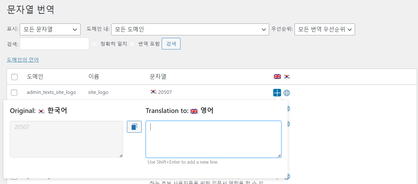 번역 추가하기 아이콘을 클릭한 다음, 로고 ID를 해당 언어 로고의 ID로 변경합니다.