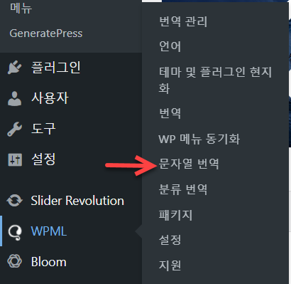 1. WPML » 문자열 번역(String Translation)으로 이동합니다.