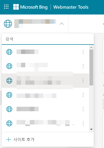사이트 가져오기 작업이 완료되면 왼쪽 상단의 사이트 선택 드롭다운에 해당 사이트가 추가됩니다.