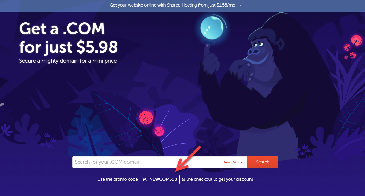 도메인 등록 시 NEWCOM598을 프로모 코드 필드에 입력해야 할인을 받을 수 있습니다.