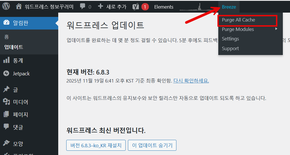 워드프레스 Breeze 캐시 플러그인 설정 방법 - 워드프레스 정보꾸러미