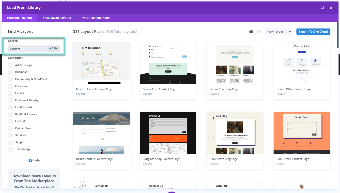 Divi 테마는 특히 거의 매주 새로운 레이아웃 팩이 추가되어 사용자들이 활용할 수 있도록 하고 있습니다. 현재 337개의 레이아웃 팩을 이용할 수 있으며 총 2469개의 레이아웃 디자인이 포함되어 있습니다. (각 레이아웃 팩은 6~8개의 레이아웃 페이지로 구성되어 있습니다.)