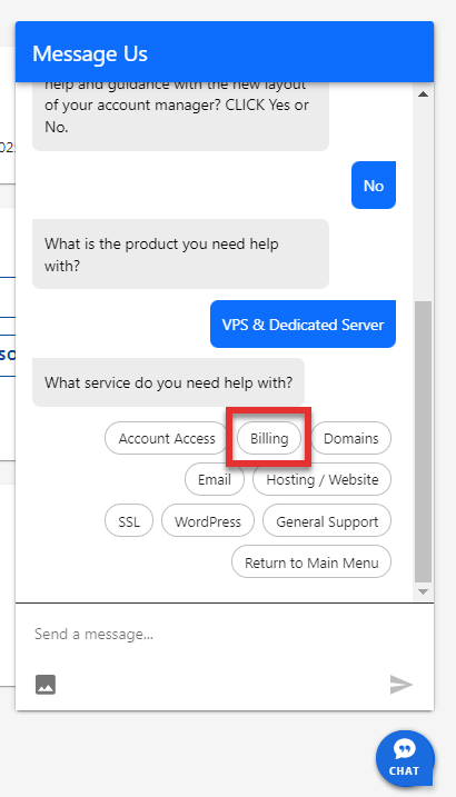 도움이 필요한 서비스를 묻는 질문(What service do you need help with?)이 표시되면 Billing을 선택합니다.